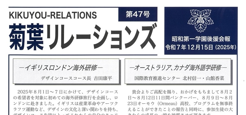菊葉リレーションズ第47号が完成いたしました。是非ご一読ください。 後援会事務局 ※ ↓↓↓ 画像クリックでPDFをご覧いただけます