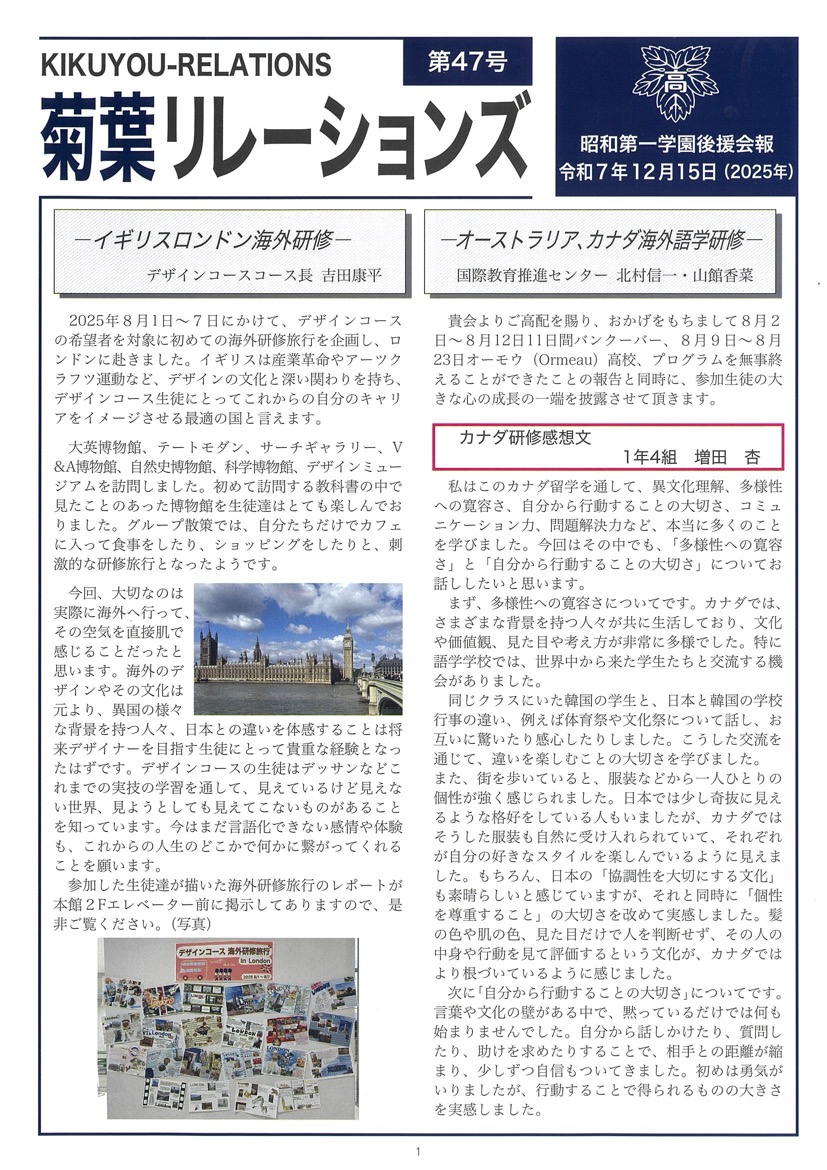 菊葉リレーションズ第47号が完成いたしました。是非ご一読ください。